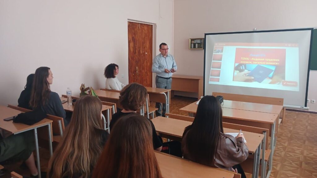 Під час заняття студенти ознайомилися з історією запровадження трудових книжок, їх значенням у системі кадрового діловодства, а також з актуальними вимогами до оформлення, внесення записів та зберігання цього важливого документа.