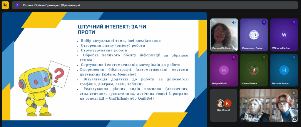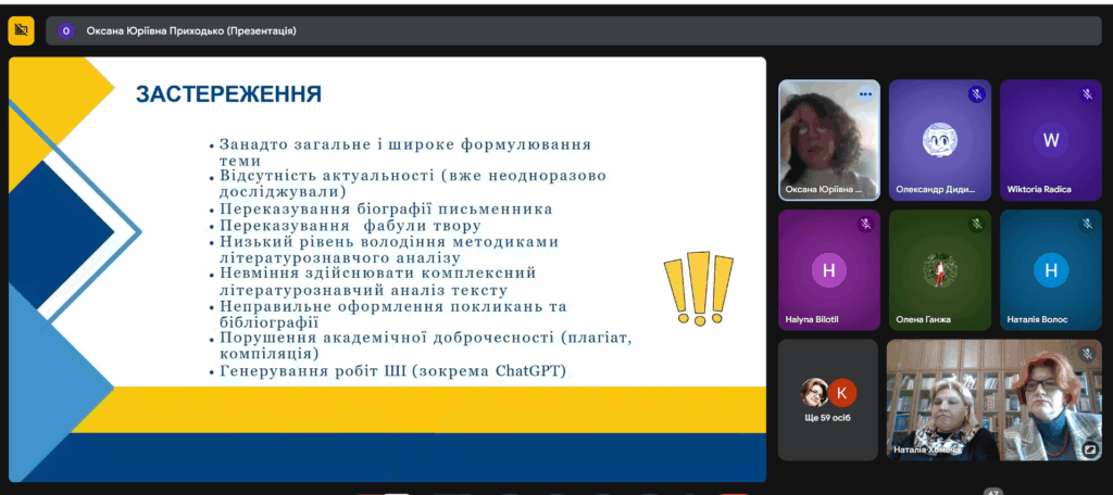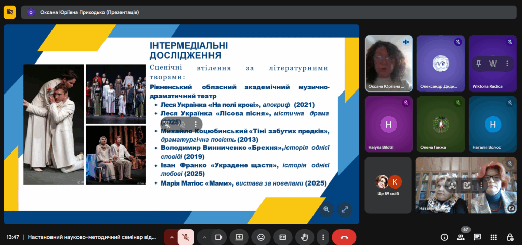 08 жовтня 2025 року кафедра української мови, історії та інформаційної діяльності у рамках наукової та профорієнтаційної роботи взяла участь у Настановному науково-методичному семінарі відділень філології, літературознавства, фольклористики та мистецтвознавства Рівненської малої академії наук учнівської молоді. З науковим повідомленням перед здобувачами освіти виступила доцентка кафедри Оксана Приходько. Вона розповіла про особливості написання наукових робіт у системі МАН, майстерність у виборі теми дослідження, специфіку наукового аналізу текстів. А також поділилася досвідом студентської наукової роботи в стінах КАІ.