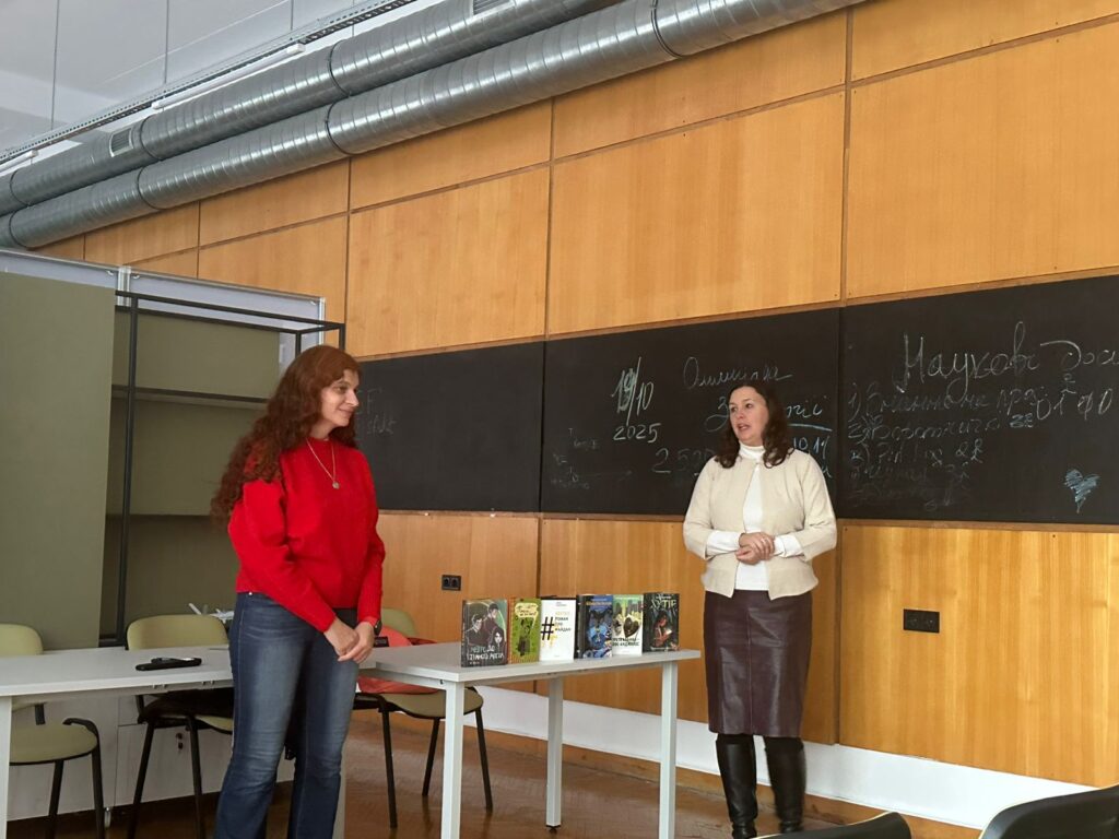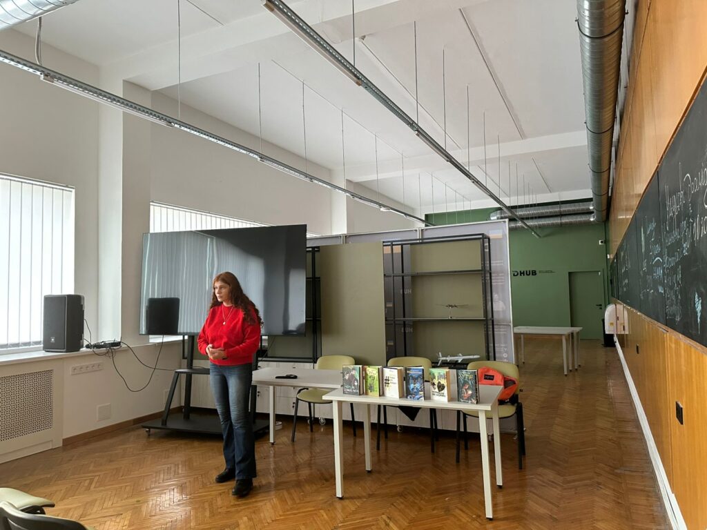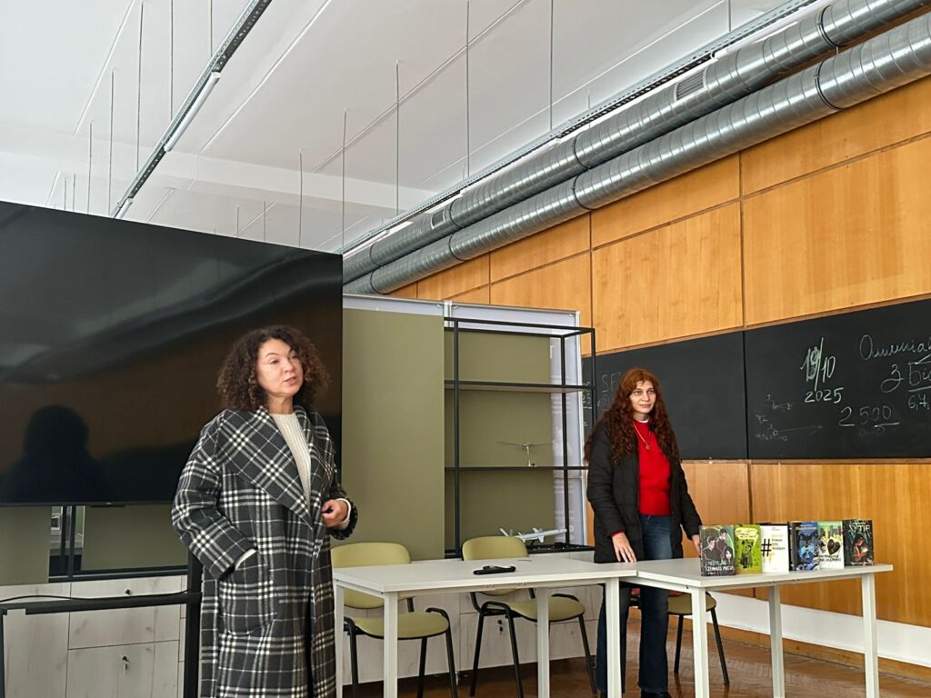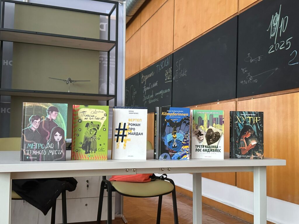 29 жовтня 2025 року кафедрою української мови, історії та інформаційної діяльності для студентів нашого університету у просторі D-hub (приміщення Науково-технічної бібліотеки КАІ)  було організовано зустріч із сучасною українською письменницею Оленою Захарченко, лавреаткою премії Олеся Гончара. Її творчість також одержала відзнаку БараБука в номінації «найкраща підліткова книжка 2022» та потрапила до короткого списку премії «Книга року BBC – 2023». Прозаїкиня  пише оповідання, повісті і романи як для дорослих, так і підлітків, використовуючи у своїх текстах елементи фентезі і міфології. Письменниця презентувала студентам найпопулярніші у своєму доробку повісті «Хутір», «Метро до темного міста», «Вертеп. Роман про Майдан», «Третя кабінка – Лос-Анджелес», «Тільки не гавкай». Тексти Олени Захарченко, створені на київських наративах, надзвичайно зацікавили студентів, оскільки є гостросюжетними, динамічними та спроєктованими на події російсько-української війни на сході України та повномасштабного вторгнення. Зустрічі з сучасними українськими письменниками стануть візитівкою кафедри української мови, історії ті інформаційної діяльності.