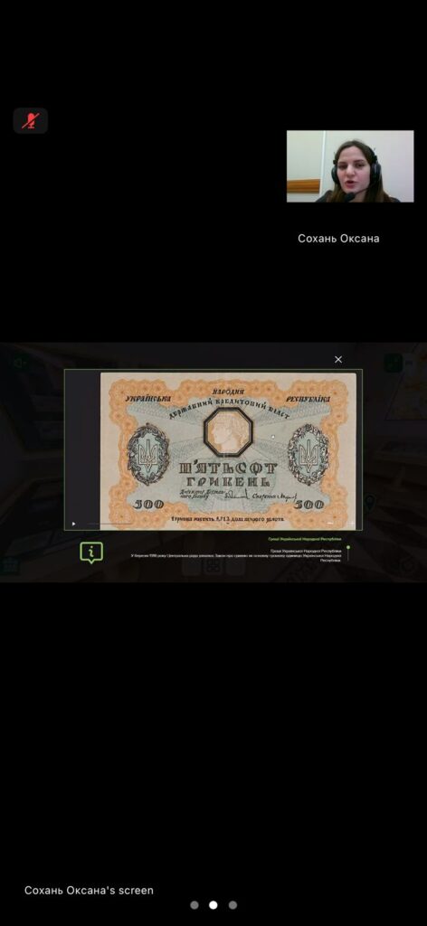 12 листопада 2025 року студенти 4 курсу спеціальності «Документознавство та інформаційна діяльність» факультету психології, комунікацій та перекладу взяли участь у віртуальній екскурсії Музеєм грошей Національного банку України, яка проводилася в онлайн-режимі на платформі Zoom.