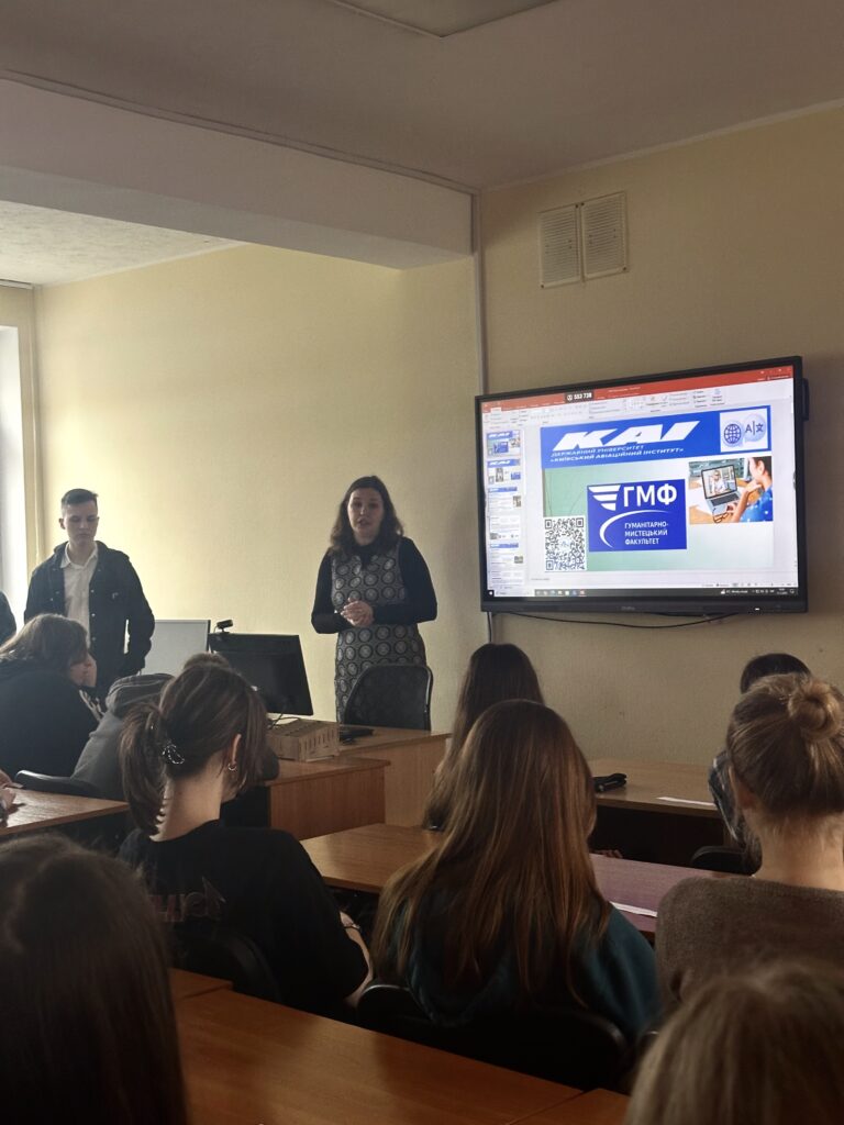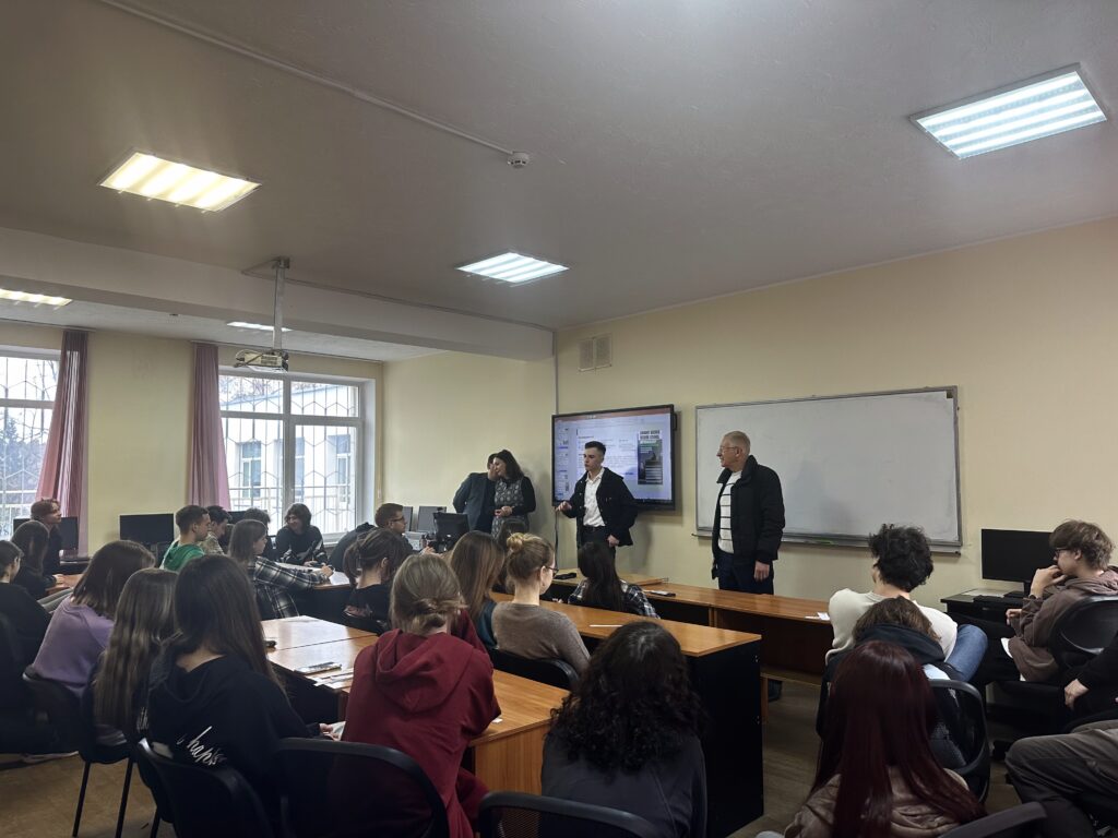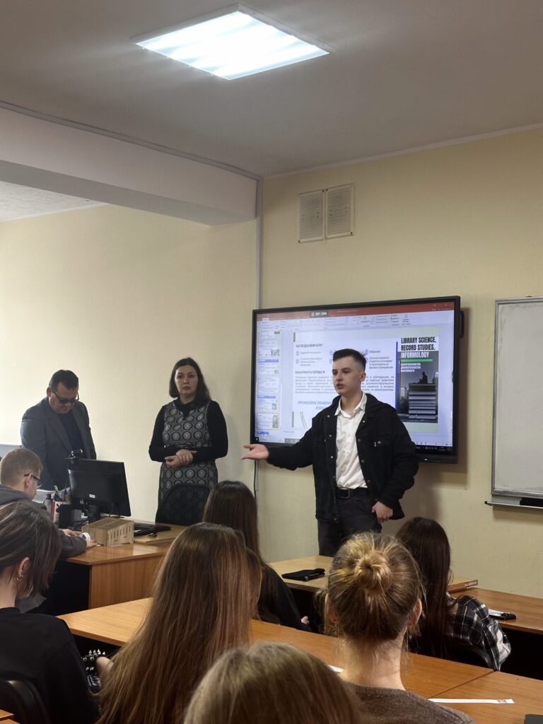 12 грудня 2025 року представники кафедри української мови, історії та інформаційної діяльності провели профорієнтаційний захід у ліцеї «Фінансовий». До заходу долучилися в.о. завідувача кафедри Анастасія СІБРУК, доцент Сергій ЧЕРІПКО, здобувачка вищої освіти 4 курсу Б-029-22-1-ДК Дарина ГРУЗИНСЬКА та здобувач вищої освіти 1 курсу Б-B13-25-1-ДК Артем ШУКЕВИЧ.