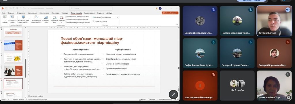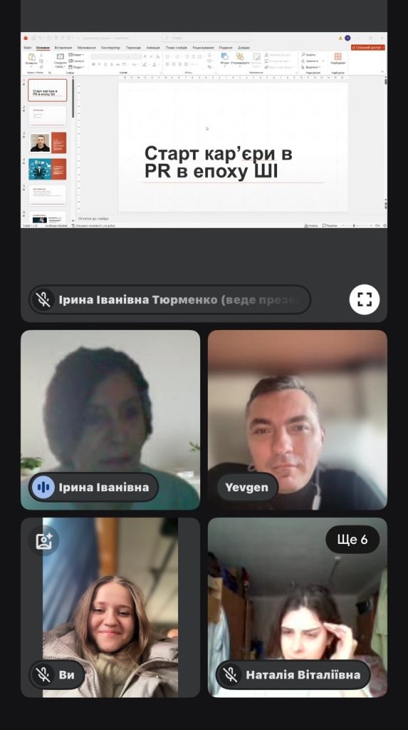 28 лютого 2026 р. на запрошення д. іст. наук., професора, професора кафедри української мови, історії та інформаційної діяльності Гуманітарно-мистецького факультету КАІ Ірини ТЮРМЕНКО була виголошена гостьова лекція «Старт кар’єри в піарі в епоху ШІ» в рамках вивчення дисципліни «Організація зв’язків з громадськістю». Лекцію для студентів 4 курсу ОПП «Документознавство та інформаційна діяльність» спеціальності «Бібліотечна, інформаційна та архівна справа» прочитав Євген БУЗИКІН, який має значний досвід роботи у сфері зв’язків з громадськістю та корпоративних комунікацій (Interpipe, Corum, SCM, TEDIS; зовнішній піар-партнер цифрової агенції Virno Consulting; радник зі стратегічних комунікацій Міністра молоді та спорту України у 2025 р.). В лекції Є. БУЗИКІН розкрив місце піар-відділів у структурі організацій; особливості комунікаційної роботи; навів вимоги до піар-фахівців, пояснив, яке місце обіймає фахівець з піар в структурі корпоративного управління; звернув увагу на важливості внутрішніх комунікацій; взаємодії з медіа та журналістами. Лектор висвітлив роль документно-інформаційних комунікацій в піар-діяльності. Особливу увагу Є. БУЗИКІН звернув на обережне використання штучного інтелекту та навів приклади розпізнавання тексів, виконаних за допомого ШІ. Лектор надав поради з пошуку роботи та кар’єрного зростання, написання якісного резюме, яке б привернуло увагу роботодавців. Лекція проходила в дружній атмосфері, викликала зацікавленість та інтерес у студентів. Є. БУЗИКІН відповів запитання студентів, поділившись «закулісними» тонкощами професії та власним практичним досвідом.