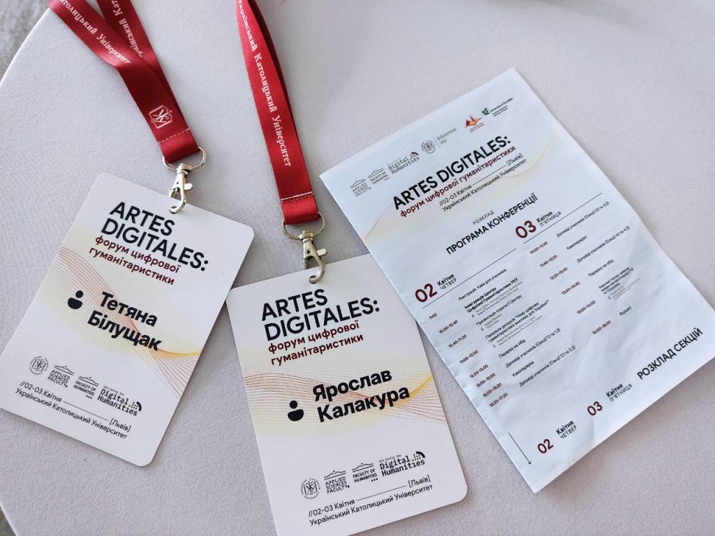 02-03 квітня 2026 року викладачі кафедри української мови, історії та інформаційної діяльності КАІ доктор історичних наук, професор, професор кафедри Ірина ТЮРМЕНКО та кандидат історичних наук, доцент, доцент кафедри Леся ХАЛЕЦЬКА виступили з доповіддю «Підготовка фахівців з документознавства та інформаційної діяльності в контексті цифровізаціі освіти» на форумі цифрової гуманітаристики Аrtes Digitales, який відбувся в Українському католицькому університеті. Форум поєднав наукову конференцію та інавгурацію Центру цифрової гуманітаристики Українського Католицького університету.
