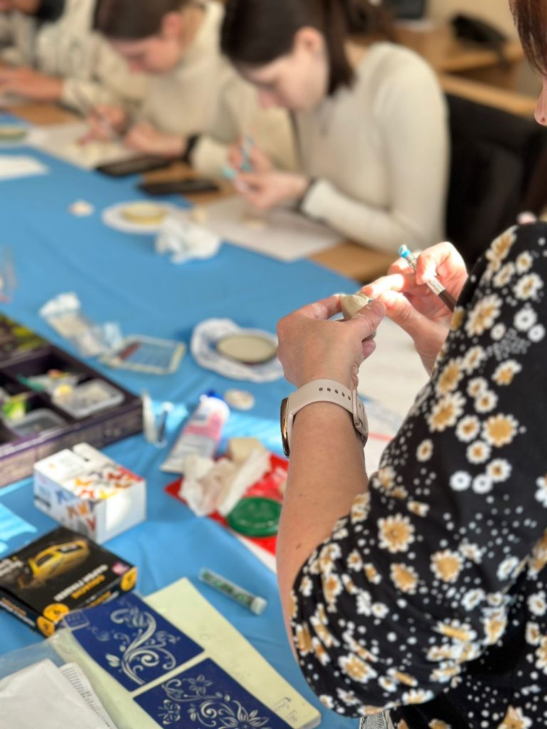 Під час майстер-класу студенти працювали з сучасними матеріалами, які після застигання набувають міцності, подібної до кераміки. Завдяки різноманітним інструментам і декоративним елементам кожен створив унікальний дизайн: від мінімалістичних форм до оригінальних текстур і символічних образів.