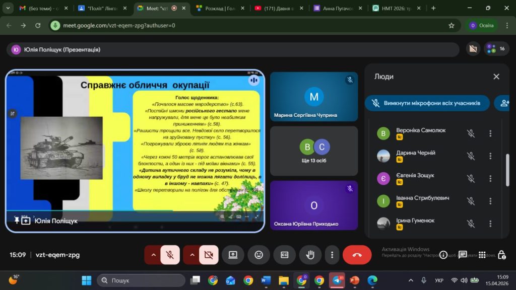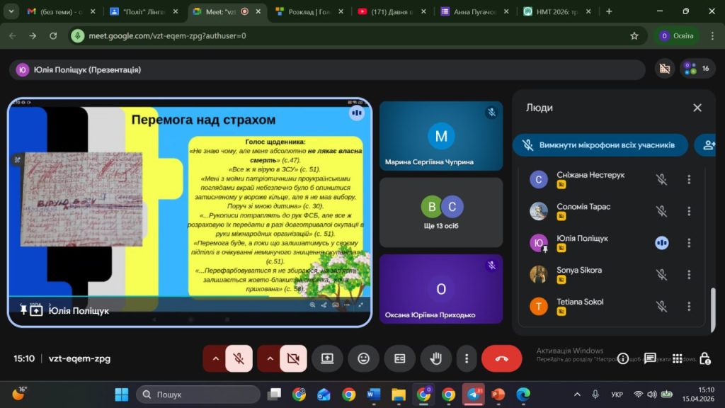 15 квітня 2026 року в рамках роботи ХХVІ Міжнародної науково-практичної конференції здобувачів вищої освіти і молодих учених «Політ. Сучасні проблеми науки» відбулося засідання секції «Лінгвокультурологія», організоване кафедрою української мови, історії та інформаційної діяльності. Поряд зі здобувачами вищої освіти нашого університету, які представляли такі факультети: ГМФ, ФТЛ, ФНЗ до участі в конференції долучилися представники Національного університету біоресурсів і природокористування України, Рівненського державного гуманітарного університету, Університету Григорія Сковороди в Переяславі, Державного університету інформаційно-комунікаційних технологій, а також ВСП «Рівненський економіко-технологічний фаховий коледж НУВГП» та Обласного наукового ліцею в м. Рівне Рівненської обласної ради, які формують майбутню наукову еліту.