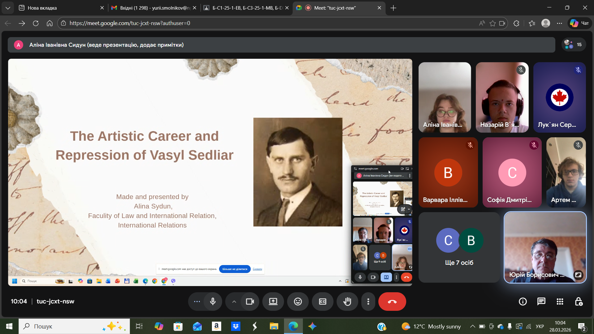 28 березня лютого 2026 року на запрошення д. іст. наук., професора, професора Ірини ТЮРМЕНКО на